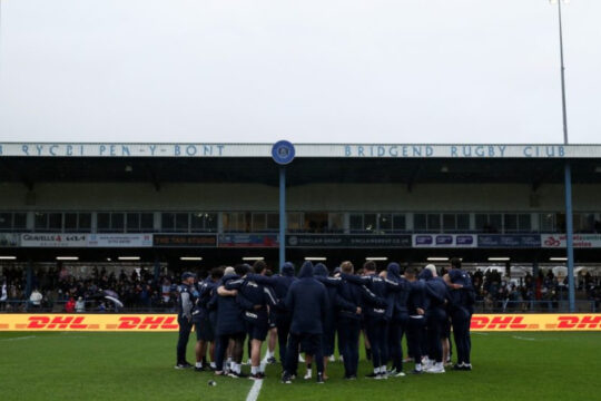 mens united-rugby-championship BRIDGEND, WALES – APRIL 06: A wide perspective of the stadium interior as Sale Sharks team members gather prior to the EPCR Challenge Cup Round Of 16 game...